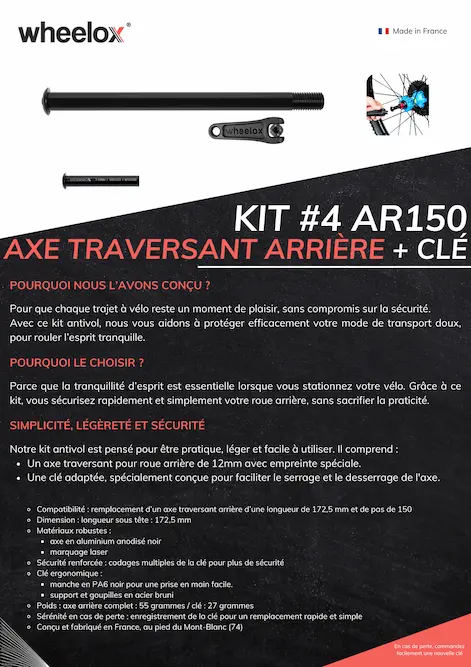 Kit antivol vélo axe traversant ARRIERE M12 wheelox® – Pas de 150